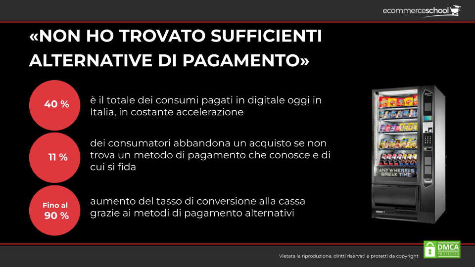 - Mancanza di metodi di pagamento adeguati;