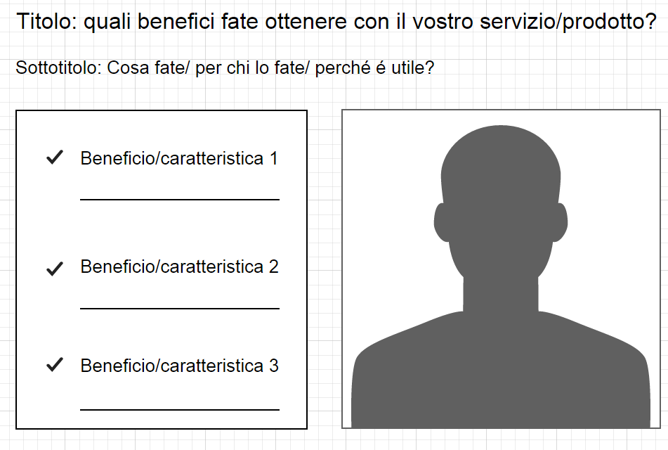 Una volta chiaro questo concetto, devi però porre massima cura nel renderlo chiaro anche ai tuoi clienti. Studia la giusta strategia per rendere sempre visibili i benefici che offri e fai un uso intelligente di titoli, sottotitoli e bullet points per veicolare il tuo messaggio al meglio.