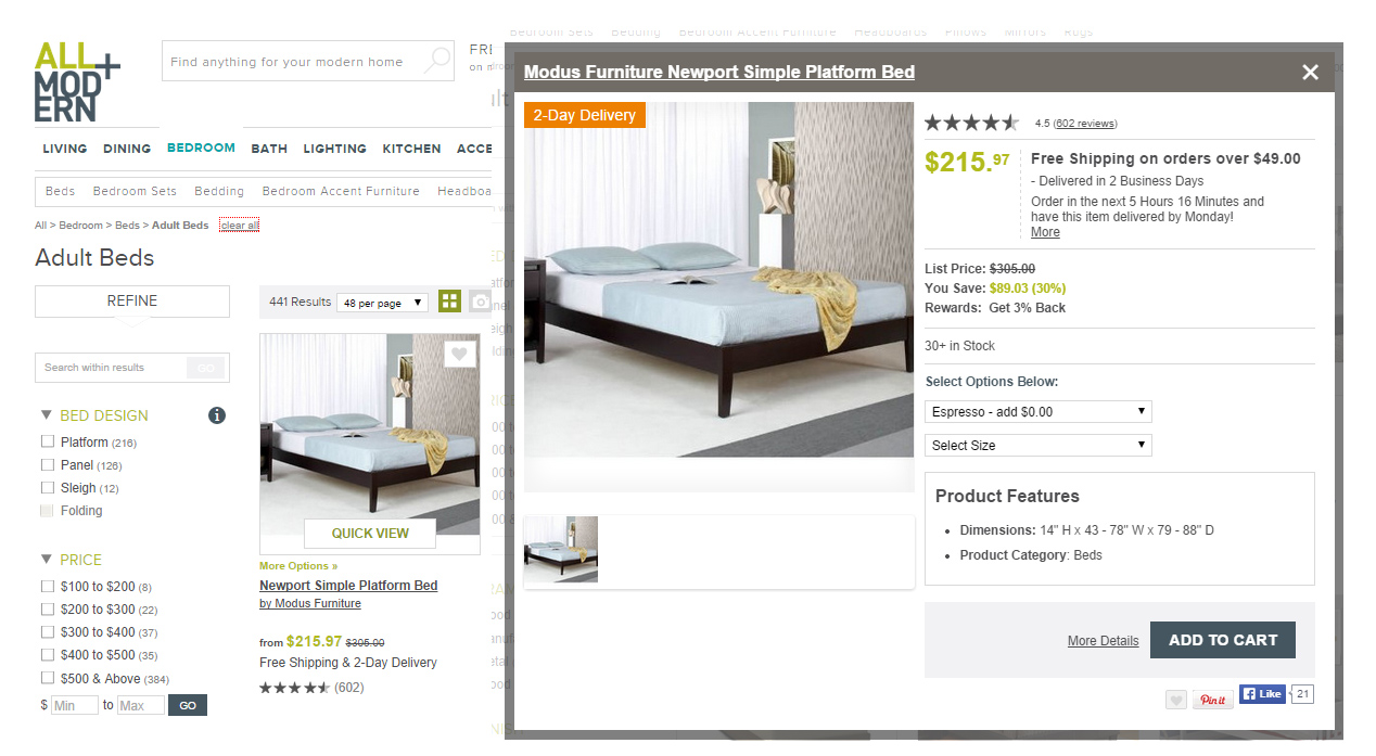 Il tempo che i visitatori trascorrono su un ecommerce è spesso limitato a pochi secondi. E’ fondamentale dunque che i tuoi visitatori trovino i prodotti per loro più rilevanti sin da subito. Per prodotti rilevanti si intendono quelli che hanno più probabilità di essere acquistati. Non puoi pensare che i tuoi visitatori abbiano le stesse esigenze, gusti o che stanno cercando tutti la stessa cosa. La Home Page di Amazon è diversa per ognuno dei navigatori, puoi fare questo anche sul tuo sito! “Sicuramente sarà difficile realizzarlo” potrai obiettare! Tranquillo! ci sono piattaforme di Marketing Automation che ti permettono di restituire per ogni tuo cliente (e non segmenti o gruppi di clienti) i prodotti di suo interesse senza avere conoscenze avanzate di programmazione. Gli esempi che vedi nell’articolo sono stati sviluppati senza l’intervento del nostro programmatore. Nell’articolo dedicato al web marketing one-to-one trovi alcuni software consigliati da utilizzare. Non è questo un articolo operativo dove si spiega come utilizzare i software, ma le logiche del marketing one to one e le sue potenzialità per quanto riguarda la rilevanza dei prodotti. Per migliorare la selezione dei tuoi prodotti e mostrare quelli più rilevanti è necessario concentrarsi principalmente su: Vediamoli in dettaglio così da capirli meglio! Se hai un ecommerce sicuramente imposti manualmente i prodotti nella tua Home Page o se in maniera dinamica basandoli su “i più venduti” i più visti” restituendo comunque articoli generici e non rilevanti per ognuno dei tuoi visitatori. Laddove un sito ha molti prodotti una home page personalizzata può aumentare (e non di poco) le conversioni. Nell’esempio di seguito ho inserito nella home page di un sito che gestisco due stringhe con dei prodotti personalizzati: Ogni visitatore vede dei prodotti diversi. ed altre variabili simili (nel software puoi decidere come basare la selezione) I "Selezionati per te" invece sono scelti automaticamente in base a: Pertanto se il cliente Mario Rossi acquista un prodotto X, o visita la scheda prodotto Y o compie altre azioni, in maniera dinamica questi prodotti ruotano cercando di restituire i prodotti con più alta possibilità di conversione. Oltre che nella Home Page anche la scheda prodotto deve contenere i correlati più interessanti per il tuo cliente: Quasi la totalità degli ecommerce oggi gestisce i correlati manualmente, li inserisce una volta per dimenticarseli per sempre. Il software che utilizzo per i miei clienti permette di ruotare in continuazione i prodotti mettendo in evidenza quelli con maggior tasso di conversione (nella scheda prodotto in foto, per esempio, altri telefoni dello stesso brand). Altre pagine dove inserire i prodotti personalizzati sono il Carrello ("Sei ancora in tempo per aggiungere"). Il software analizza i prodotti con più probabilità di essere venduti e li mostra al cliente. Pensa quanto tempo risparmiato. Non devi occuparti di pensare a quali prodotti inserire, né di selezionare quelli che reputi migliori. Se una macchina o un software può toglierti del lavoro, puoi dedicarti alla strategia, che invece non può fare un programma. Sono da inserire anche nelle pagine catalogo, per creare aree dedicate come Bottega Verde: Cerca di mostrare molti prodotti ed in particolare quelli con la migliore probabilità di essere venduti. Grazie alla maggiore rilevanza dei tuoi prodotti aumenterai le tue conversioni. I tuoi clienti vedono solo il 5% dei tuoi prodotti? Assicurati che siano quelli giusti! Questo tipo di attività funziona bene con clienti che hanno già acquistato e conosci i loro comportamenti. E se i clienti invece sono alla loro prima visita? E' possibile (e molto efficace) modificare in maniera automatica i contenuti del sito a seconda del visitatore. I Software di Web Analytics avanzata ci restituiscono dati unici per ogni visitatore Ecco una schermata di uno dei software che utilizzo: Grazie a questi dati hai in mano delle informazioni preziose per il cliente "Mario Rossi" e puoi effettuare efficaci azioni di marketing. Ecco qualche esempio che potresti utilizzare per il tuo SHOP DI ABBIGLIAMENTO: Esempio 1: Esempio 2: Esempio 3: Esempio 4: Per essere sicuro che i tuoi prodotti siano rilevanti devi mostrarli al giusto pubblico. Se vuoi approfondire ti consiglio il lungo articolo dedicato al web marketing comportamentale (one to one). Se invece lo vuoi mettere in pratica continua a seguirci perchè sarà uno dei prossimi argomenti dei nostri corsi. Anche il tuo sito può essere come quello di una Big Company! Sia che tu abbia centinaia sia migliaia prodotti nella tua gamma, è fondamentale migliorare la ricerca di questi. Secondo un analisi della società di ricerche Marketing Sherpa (link allo studio originale) il 43% dei visitatori che arrivano su un sito e-commerce intraprende subito, come prima cosa, l’azione di cercare il nome di un prodotto (27% degli utenti) o di una categoria (16% degli utenti) nella search box del sito (la ricerca interna all’ecommerce). Quindi hai quasi la metà del sito che non vede i prodotti ma li va a cercare subito. Se vuoi una ricerca potenziata a buon prezzo (quasi gratis) puoi utilizzare Plugin come Searchinise o Doofinder: Non ti nego che mi capita quotidianamente di visitare siti, anche con grandi flussi di traffico, che non utilizzano una search engine potenziata. Nel caso specifico ci sono piattaforme CMS come Magento che di default offrono una search engine interna piuttosto scadente. Non mi dilungo in merito perchè puoi leggere un articolo dedicato se vuoi approfondire: Oltre alla ricerca potenziata, la navigazione nelle pagine di catalogo deve essere alla portata di tutti, ben filtrabile e mostrare più prodotti possibile. L' utente non deve entrare nelle singole schede prodotto per avere un quadro chiaro di tutti i prodotti, come nel sito John Lewis: Nella pagina catalogo puoi sfruttare la quick view per offrire s