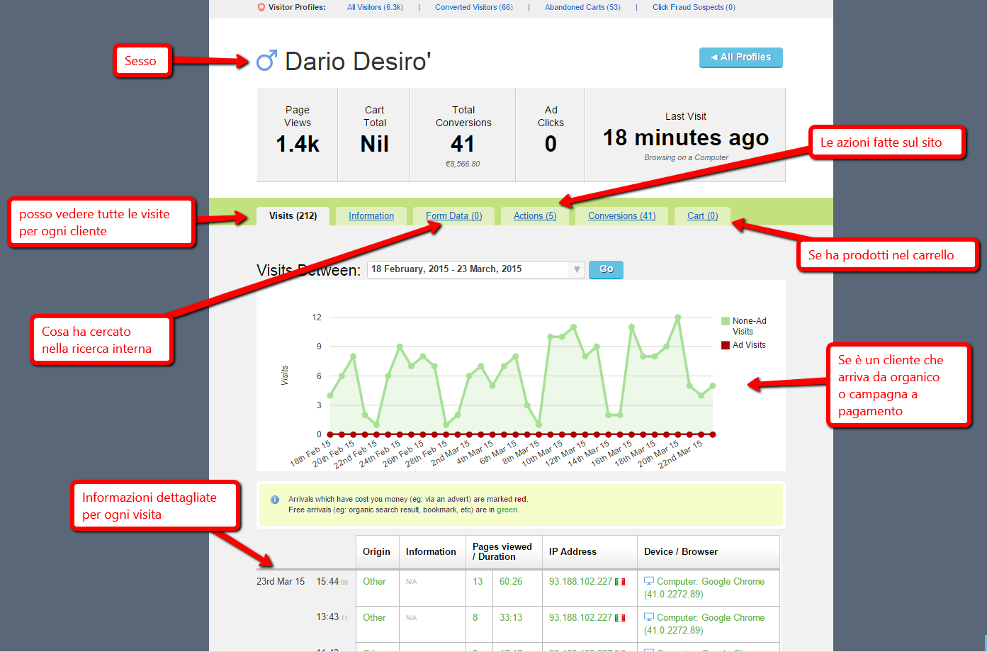 (cosa ha fatto fuori dal sito prima di visitare il nostro: da quali siti e quali Keywords arriva, da quale Campagne Display etc)