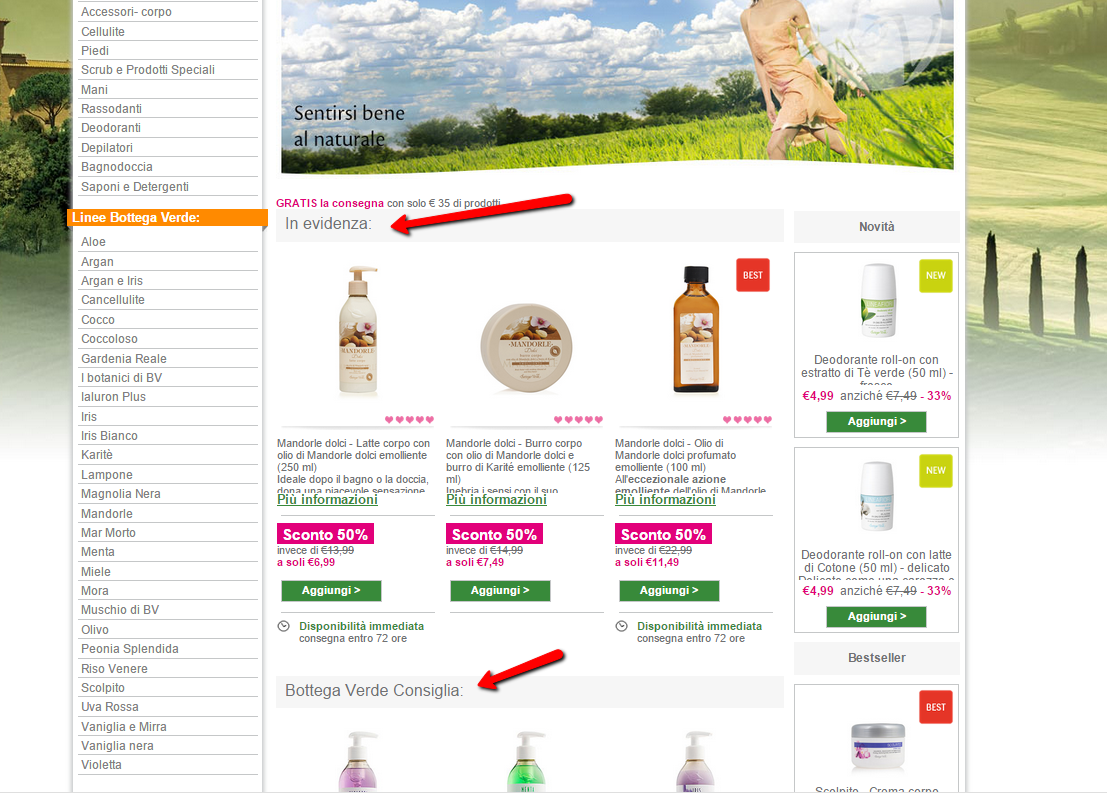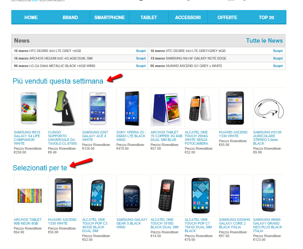 Nella sezione "più venduti" vengono mostrati un mix tra:
