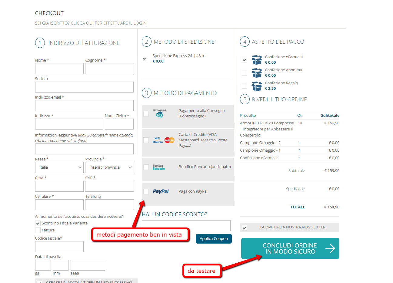 Ottimizza la pagina di checkout