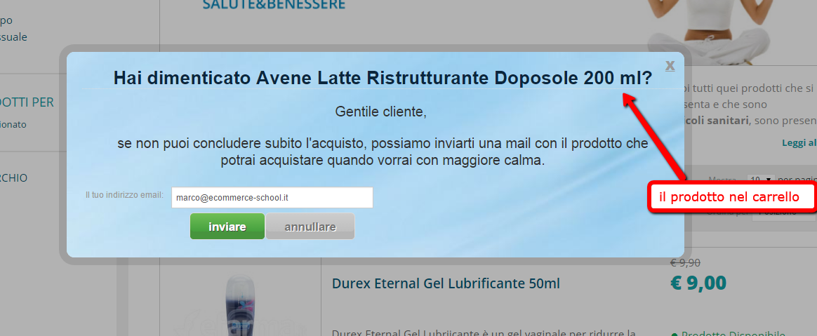 spesso sul più bello l’utente molla i prodotti nel carrello, se ne esce dal sito e ti dimentica per sempre.