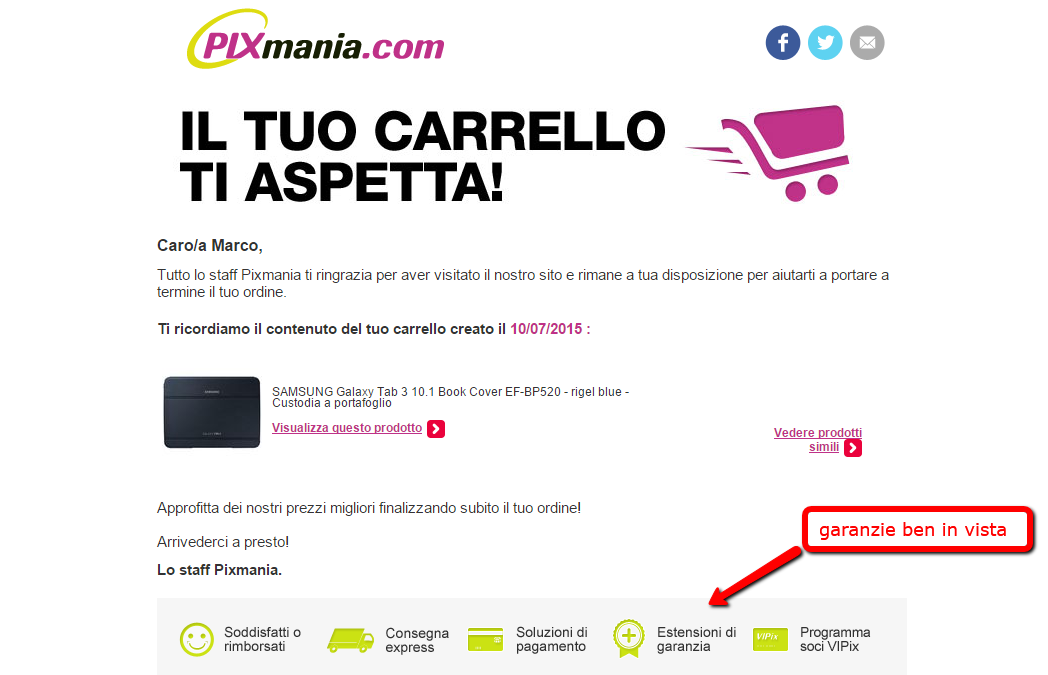 - Metti bene in mostra le garanzie, le modalità di spedizione e di pagamento. Potrebbero essere quelle le ragioni dell'abbandono del carrello, riduci i fattori di incertezza.