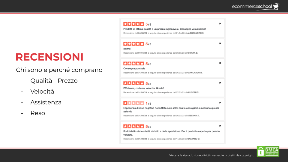 Queste informazioni si possono ottenere attraverso l’analisi delle Recensioni e delle Domande & Risposte: