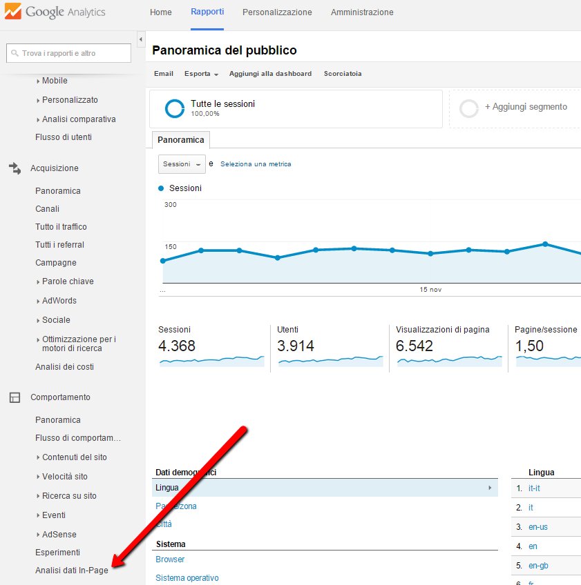 E' selezionabile dal menù comportamenti di Analytics:
