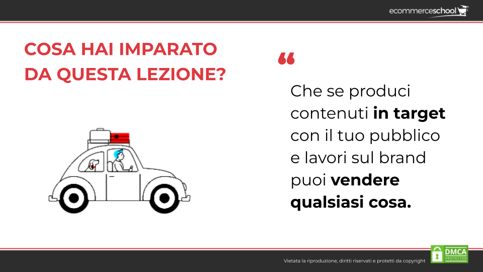 Una lezione importante che si può estrapolare da tutti questi casi studio è che se produci contenuti in target con il tuo pubblico e lavori sul brand puoi vendere qualsiasi cosa.