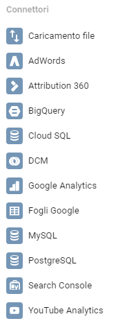 Puoi creare nuove origini dati non solo da Analytics ma da diverse origini di dati come Adwords, fogli Google, Youtube Analytics, Mysql, Search Console e altro.