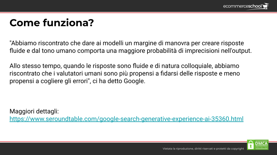 Google dice che impiega i suoi Search Quality Raters per valutare questi risultati e ne trae un feedback per migliorare i modelli in futuro.
