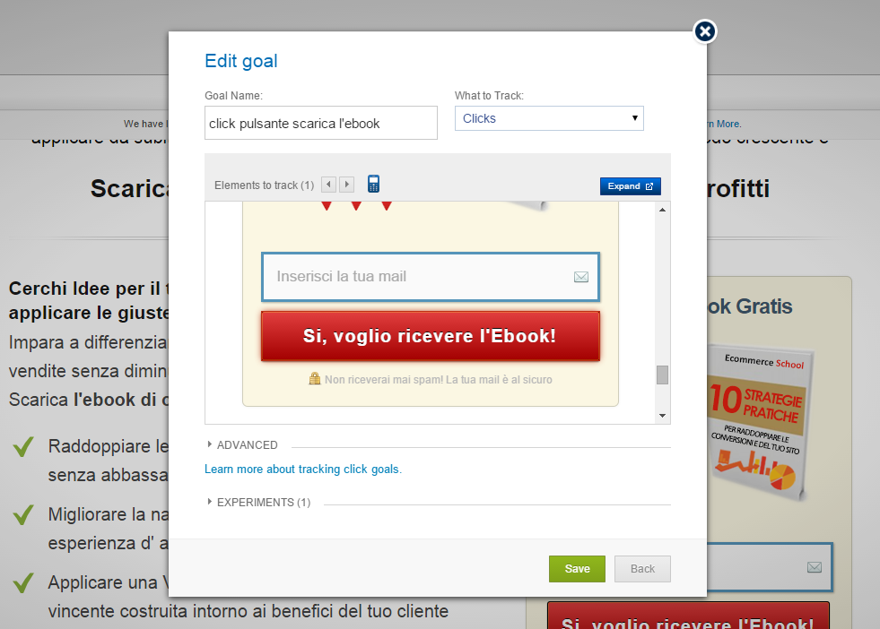 - Ma che serve tracciare la pagina se ho già impostato il click sul pulsante come obiettivo? Per diverse ragioni, una fra tutte: se un utente dopo aver inserito la mail clicca sulla propria tastiera "Invio", arriva alla pagina di destinazione ma il click sulla call to action non viene conteggiato!