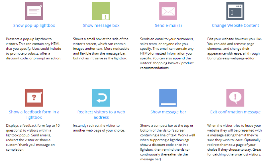 L’abbondante numero di segmenti disponibili unito alla velocità di implementazione delle automazioni rendono Bunting un software davvero potente e versatile.