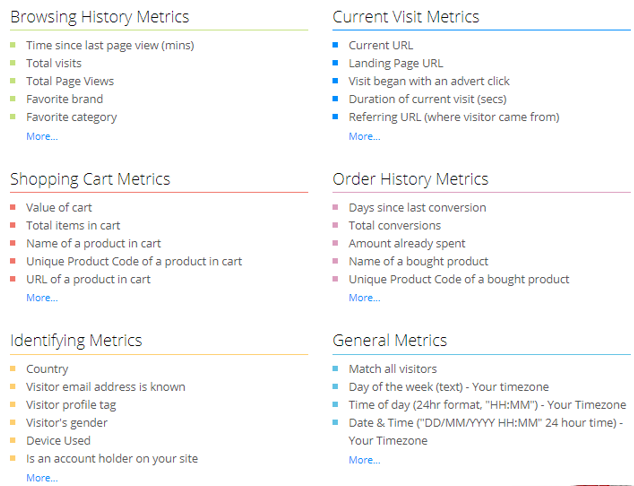 é possibile davvero creare infiniti segmenti, combinando metriche su cronologia di navigazione e di acquisto, dati sulla sessione in corso, dati sul carrello e tanto altro.