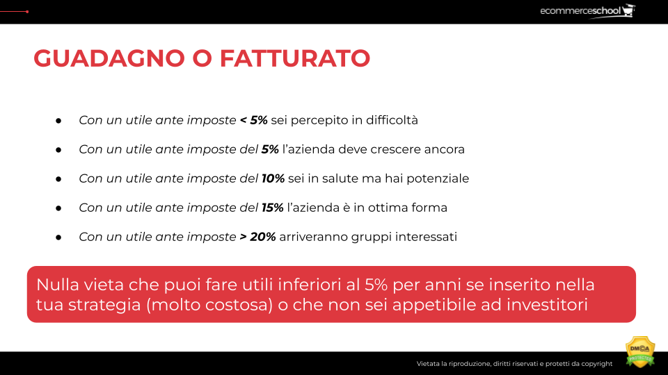 - Un utile netto inferiore al 10% potrebbe sollevare delle preoccupazioni tra i potenziali investitori o fornitori.