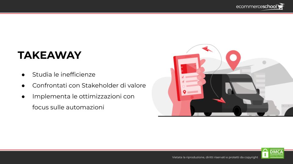 Rimangono ancora 3 takeaway che si possono portare a casa da questo caso studio davvero interessante, 3 consigli per chiunque stia affrontando l’internazionalizzazione della logistica per ecommerce e voglia mantenere efficace ed efficiente il proprio servizio: