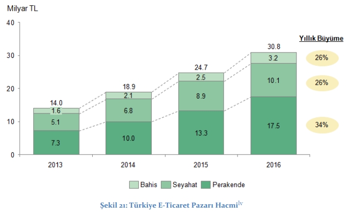 Questi dati sono stati condivisi da Erol Bilecik, responsabile della Turkish Industry and Business Association (TÜSIAD), che ha condiviso una nuova relazione sull’e-commerce in Turchia. Lo studio mostra che l’ecommerce in Turchia è cresciuto da circa 6,4 miliardi di euro nel 2015 a 6,95 miliardi di euro lo scorso anno.