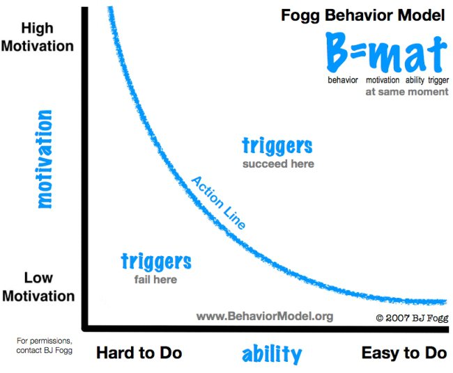 Il Modello Fogg si basa essenzialmente su tre variabili indipendenti: Motivazione, Abilità, Spinta. Queste tre variabili, se presenti insieme allo stesso momento, ti daranno la combinazione per accedere al caveau segreto, presente proprio sotto il tuo naso.