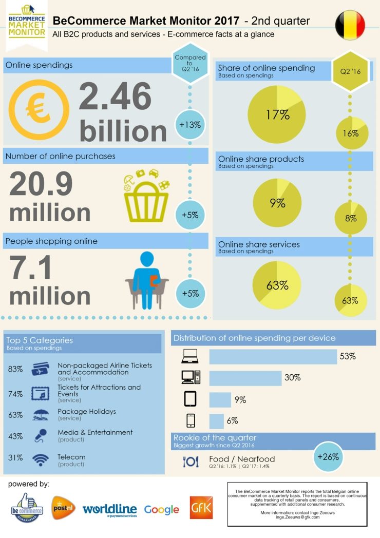 L’ecommerce in Belgio ha totalizzato 4,9 miliardi di euro nei primi sei mesi dell’anno e la previsione è che l’industria online al dettaglio supererà i 10 miliardi di euro per la prima volta alla fine di quest’anno.