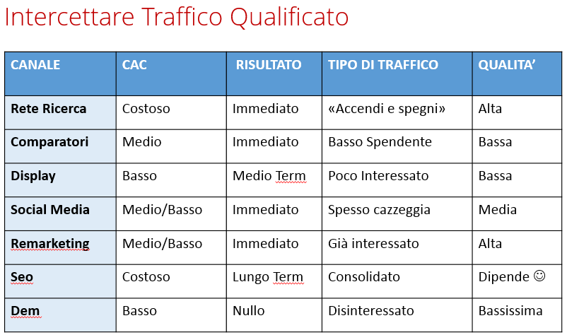 A seconda del tuo obiettivo puoi utilizzare il canale più adatto, è importante definire prima di investire dove andare a reperire il traffico qualificato.