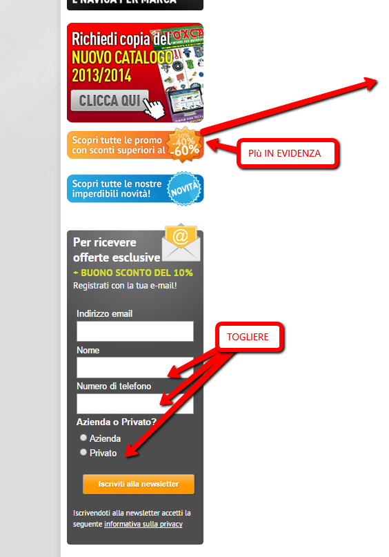 L'iscrizione alla Newsletter deve essere più semplice possibile, chiedi solo la mail.