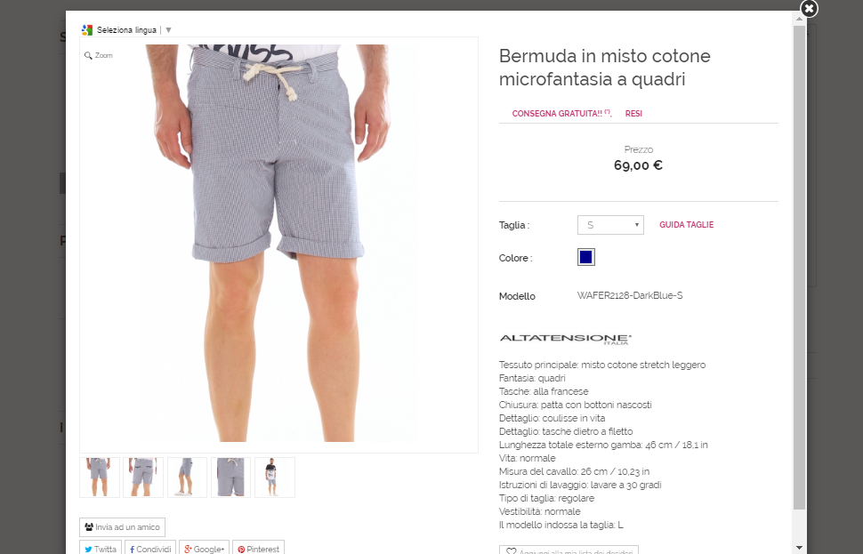 Senza call to action, anche una quick view ben costruita come questa perde di efficacia (l’utente deve comunque tornare indietro al catalogo e aprire la scheda prodotto).