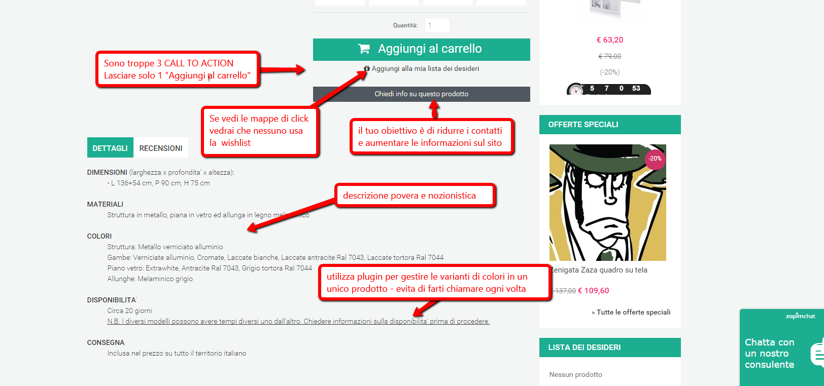 Nel realizzare la scheda prodotto è importante rispondere a tutte le domande (potenziali) dei tuoi visitatori sia per aumentare le vendite sia per limitare le chiamate in entrata di informazioni tecniche o specifiche.