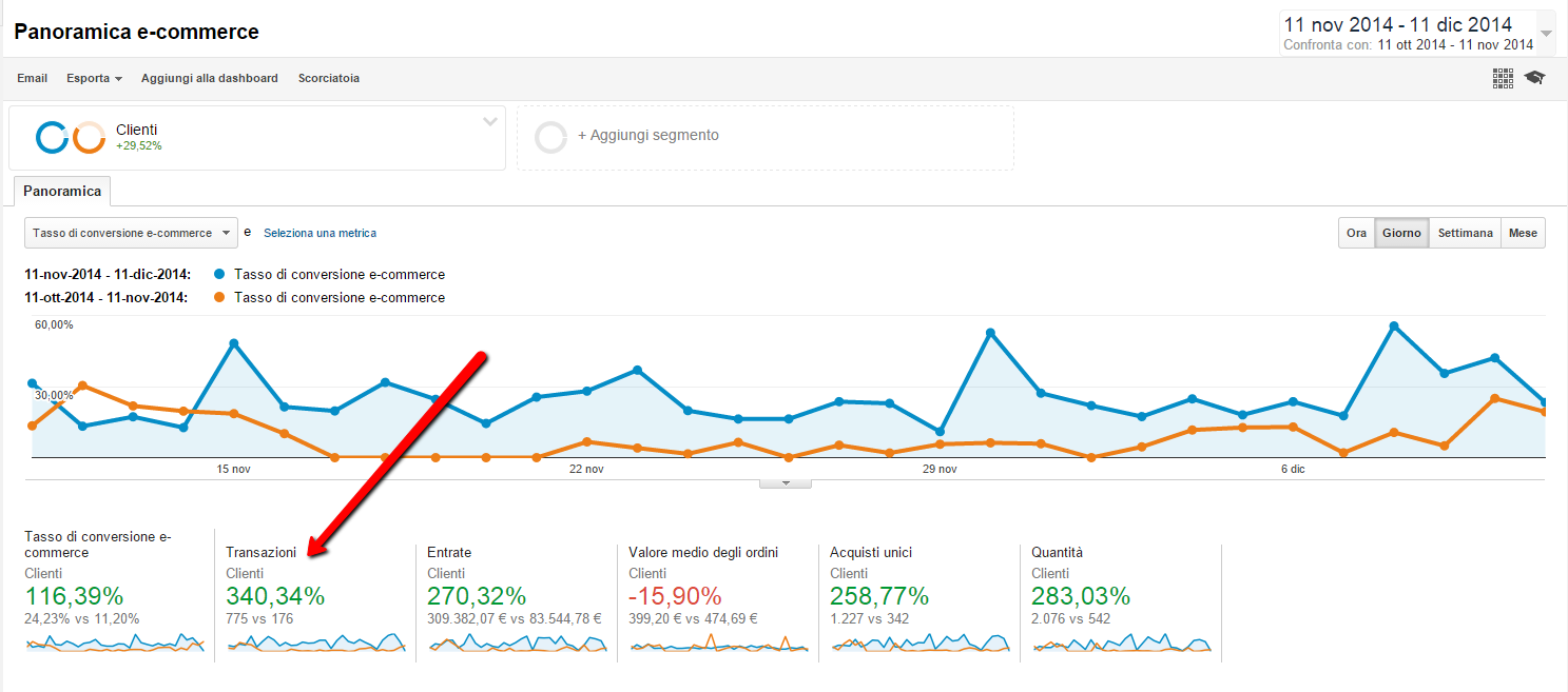 Altre volte invece se hai ascoltato per bene i tuoi clienti e le modifiche apportate erano effettivamente quelle giuste il tuo sito potrà subire immediatamente un picco di conversioni.