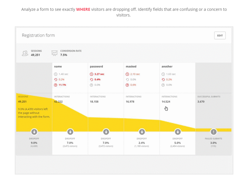Ti basterà inserire l'url della pagina che contiene il form in html e Hotjar ti identificherà i diversi passaggi che portano alla call to action, in una maniera molto simile a quanto avviene con i funnel di conversione:
