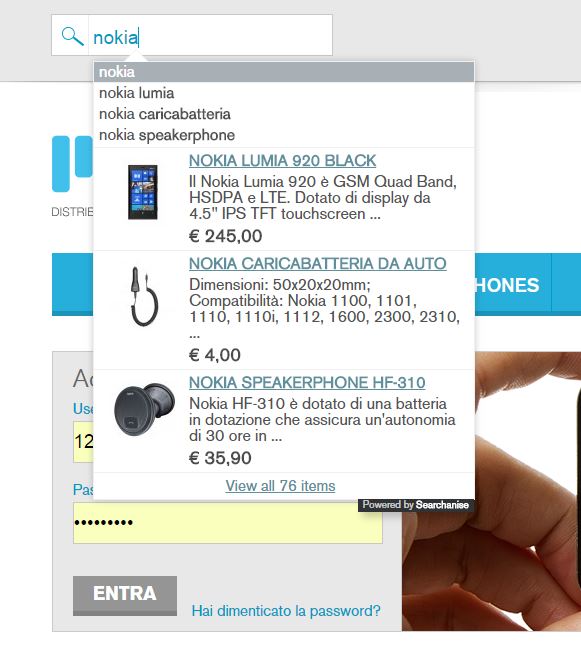 (https://start.searchanise.com) su un B2B da me realizzato su piattaforma Magento. E’ un plugin gratuito (nella versione base) ottimizzato per la piattaforma ecommerce Magento.