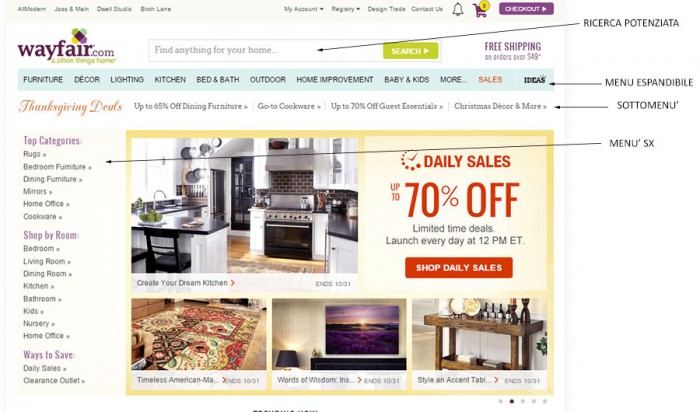 Ti riporto l'esempio di Wayfair, un ottimo sito: