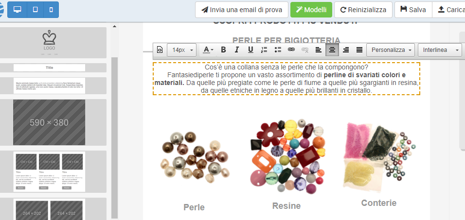 Inoltre, le email vengono automaticamente realizzate con design responsive, in modo da ottimizzare la resa della mail su tutti i supporti: mobile, tablet o computer.