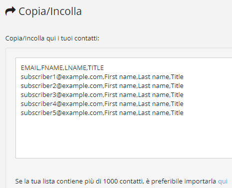 L’utente che acquista il software può importare i propri contatti salvando e caricando una lista in formato CSV con punto e virgola. E’ possibile inserire campi personalizzati, oltre a campi transazionali, come l’importo del carrello o l’ID dell’ordine, che recuperano automaticamente i risultati dello script di tracking delle vendite, utile nel caso degli ecommerce.
