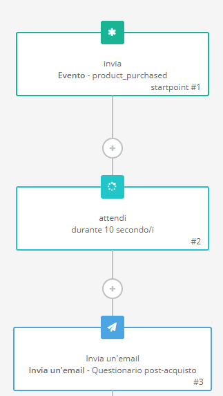 Molto utile e intuitiva la funzione di creazione dei Workflow, chiamati all’interno della piattaforma “Scenari”, con cui è possibile creare un sistema di marketing automation basato sulla navigazione e gli acquisti degli utenti.